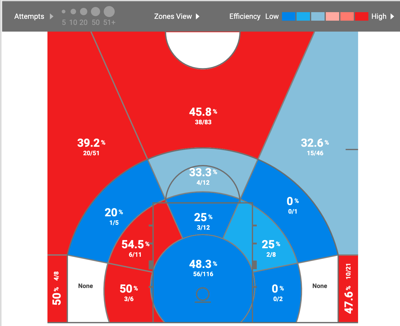 Stats: 16.5 PPG 3.5 RPG 3 APG 1.4 SPG 0.1 BPG 1.8 TOPG on 43/42/72