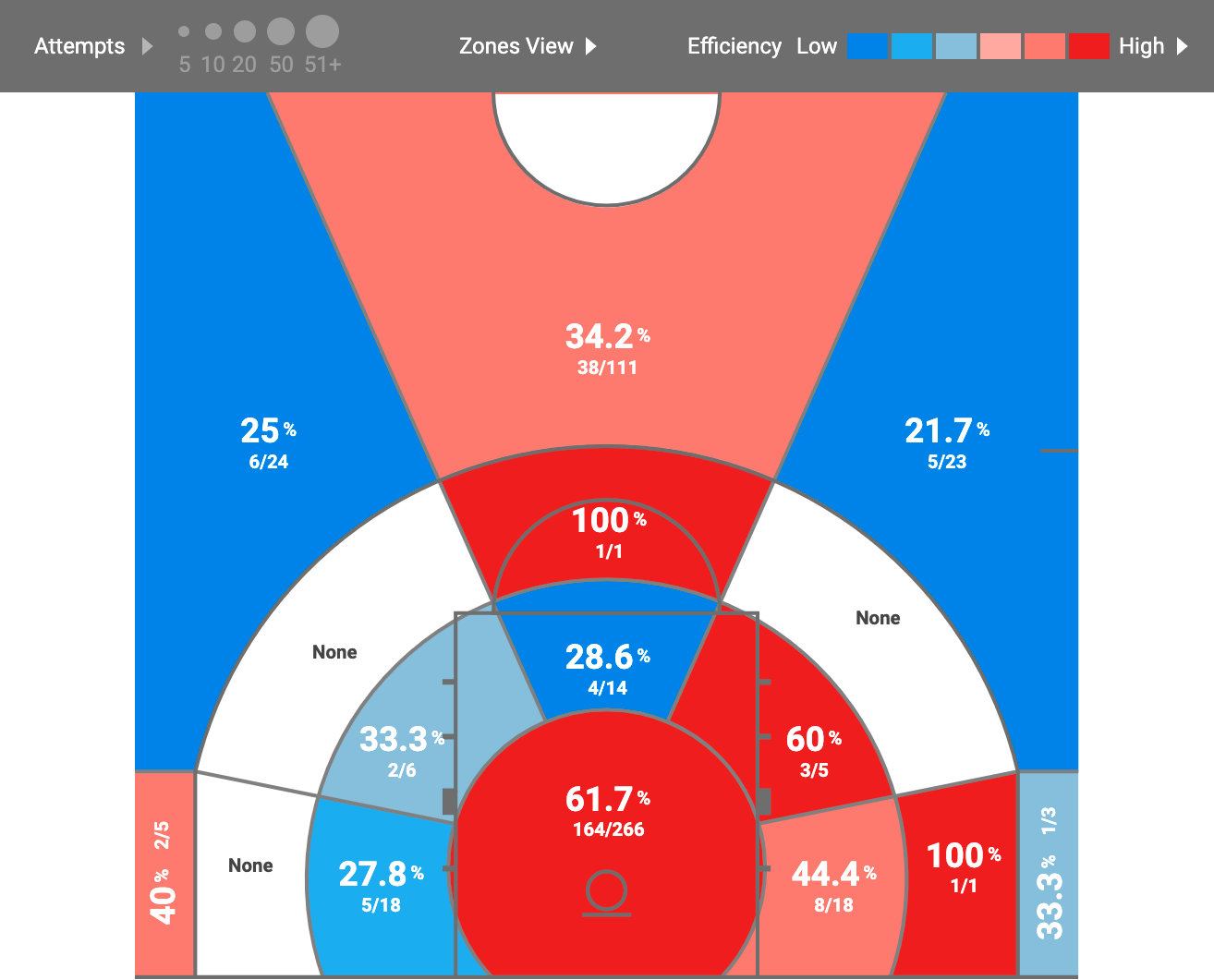 Season Stats: 18.3 PPG 6.4 RPG 1.4 APG 0.8 SPG 1.4 BPG 1.9 TOPG 3.1 FPG in 29 MPG on 49/31.5/78